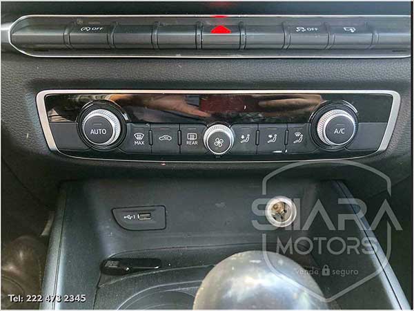 Volante multifunciones forrado en piel, con ajuste de altura, control de crucero en palanca, controles de audio, controles para teléfono, mandos de voz, paletas de cambios, etc. Climatizador automático, Pantalla central que muestra estado del vehículo, detalles multimedia, etc. Sistema de sonido de excelente calidad de agencia, con Bluetooth, lector de USB y múltiples bocinas. Palanca S-Tronic con diferentes modos de conducción, freno de mano eléctrico, con función autohold.