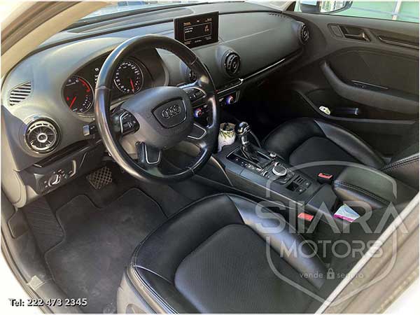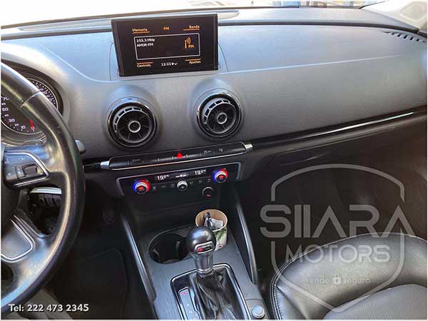 Volante multifunciones forrado en piel, con ajuste de altura, control de crucero, controles de audio, controles para teléfono, mandos de voz, paletas de cambios, etc. Asientos de piel. Climatizador automático de doble zona, tablero digital. Pantalla central que muestra estado del vehículo, detalles multimedia, etc. Sistema de sonido de excelente calidad de agencia, con Bluetooth, entrada auxiliar, lector de CD, USB y tarjeta SD. cuenta con múltiples bocinas. Palanca electrónica S-Tronic con diferentes modos de conducción, freno de mano eléctrico, con función autohold.