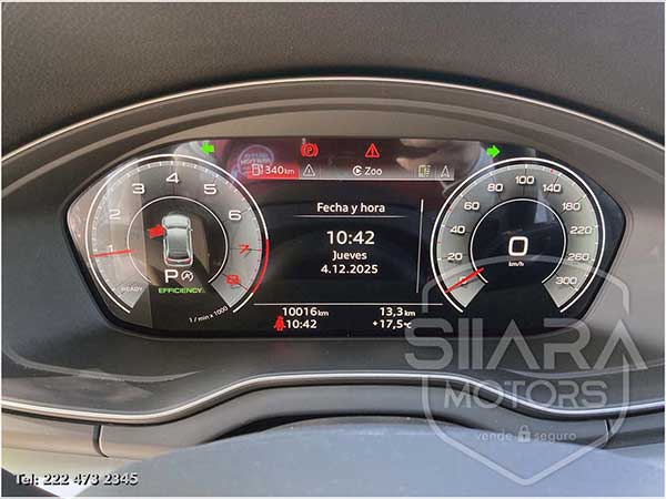 Tiene el máximo equipo de seguridad disponible incluye tracción integral (Quattro) frenos de disco en las cuatro ruedas con ABS, control de tracción, distribuidor de fuerza de frenado (EBD), bolsas de aire (frontales, laterales y de cortina) control de estabilidad, faros de LED, faros de niebla, luces direccionales en los espejos etc.
