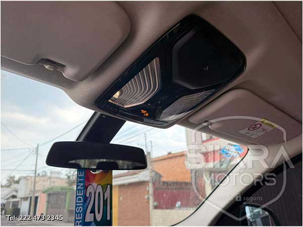 Llaves de presencia con botón de encendido. Asientos eléctricos, con memoria de posiciones, y vestiduras de piel. Quemacocos panorámico. Volante multifunciones forrado en piel, con ajuste de altura y profundidad, con control de crucero, controles de audio, controles para teléfono, etc. Climatizador automático de triple zona. Consola central con amplia pantalla que muestra, cámara de reversa, sensores de estacionamiento, estado del vehículo, detalles multimedia, etc. Sistema de sonido de excelente calidad de agencia, con múltiples bocinas en todas las puertas y demás lados. Palanca electrónica con diferentes modos de conducción. Amplios asientos traseros, con descansabrazos al centro.