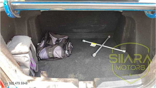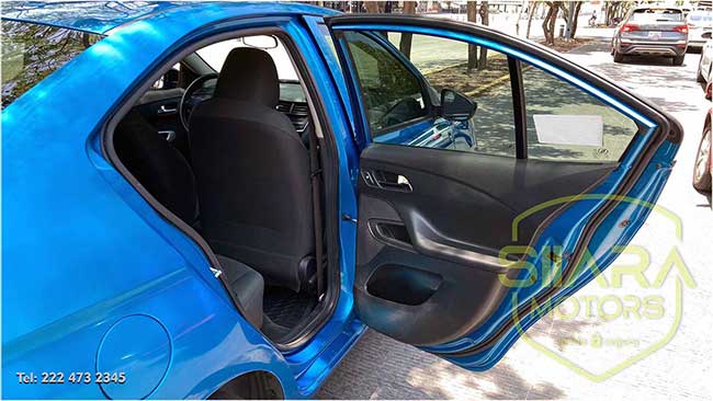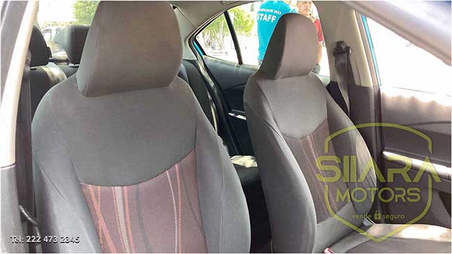 Volante con ajuste de altura, Aire acondicionado. Sistema de sonido de agencia, bluetooth, USB, y entrada auxiliar. Amplios asientos traseros, y amplia cajuela. Además, los respaldos traseros son abatibles, por lo que se puede tener una cajuela aún mayor en caso de ser necesario.