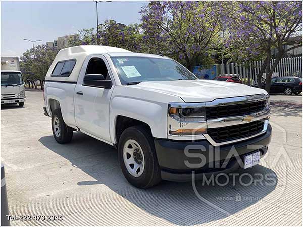 Vendo excelente Pick-Up Chevrolet Silverado 1500 LS 2018. Elegante y muy espaciosa, con camper para traer mercancía cubierta, Cuenta con transmisión automática de 6 velocidades, Motor 4.3 litros de 6 cilindros, 285HP. Con una capacidad de arrastre de 2,727 Kg y cargar 990 Kg, cabina sencilla, pagos al corriente. ÚNICO DUEÑO. todo pagado al 2025.