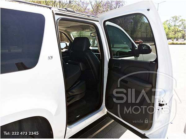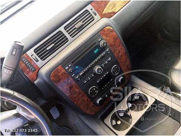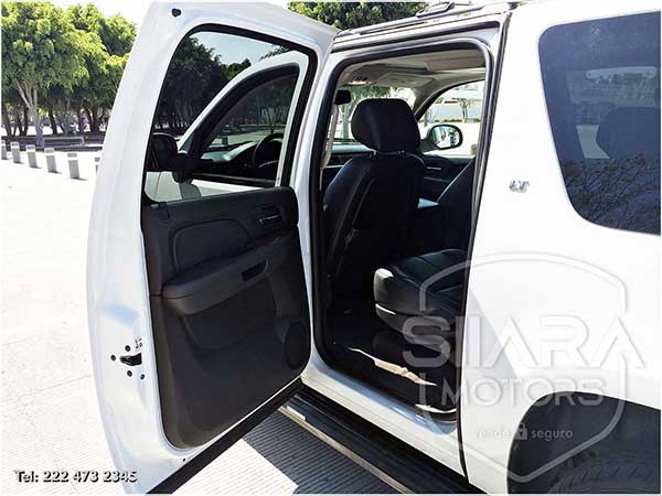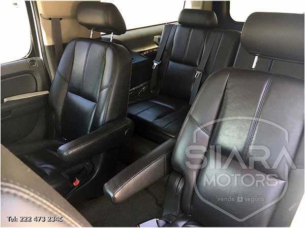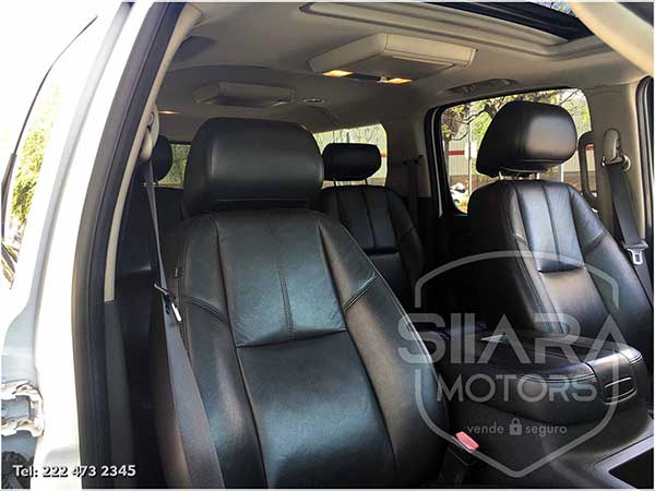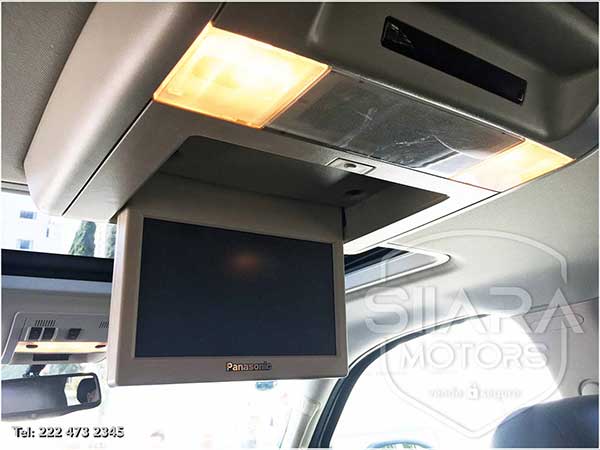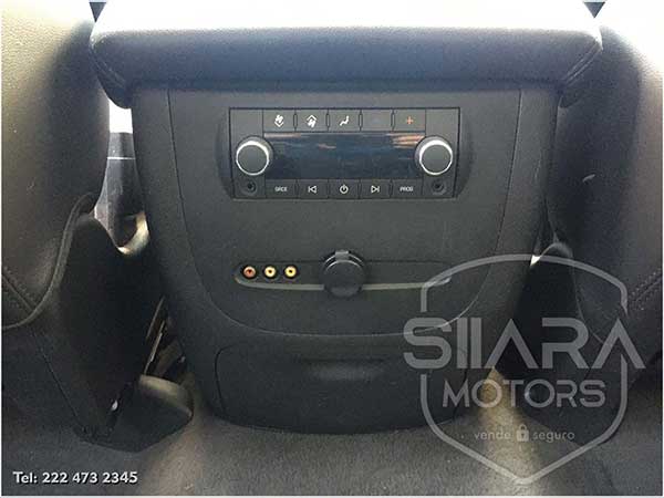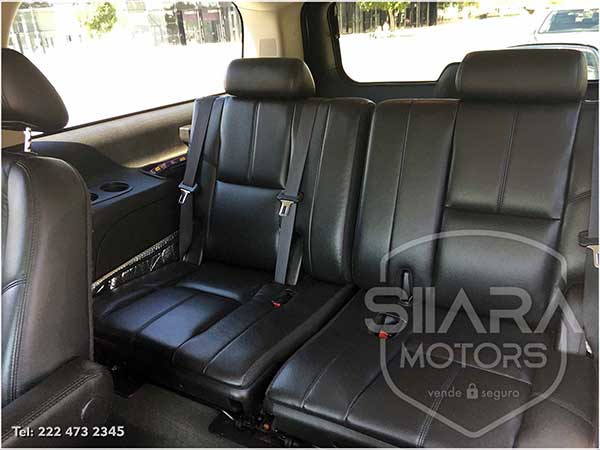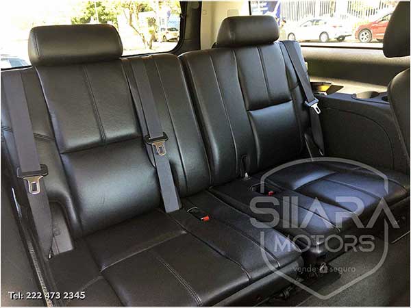 Asientos eléctricos, con ajuste lumbar, y memoria de posiciones. Vestiduras de piel, con calefacción, Acabados de puertas con molduras tipo maderas. Quemacocos, DVD, Volante forrado en piel con ajuste eléctrico de altura, control crucero, controles de audio, controles para teléfono, mandos de voz, etc. Climatizador automático de múltiples zonas. Consola central que muestra cámara de reversa y sensores de estacionamiento, sistema de sonido de excelente calidad de agencia, con Bluetooth, CD, entrada auxiliar. Múltiples bocinas en todas las puertas y demás lados. Amplios asientos traseros, con descansabrazos al centro, tercera fila de asientos tipo cubo. Amplia cajuela, además, las dos filas de asientos traseros son abatibles, por lo que se puede tener una cajuela aún mayor en caso de ser necesario. La puerta de la cajuela es eléctrica.