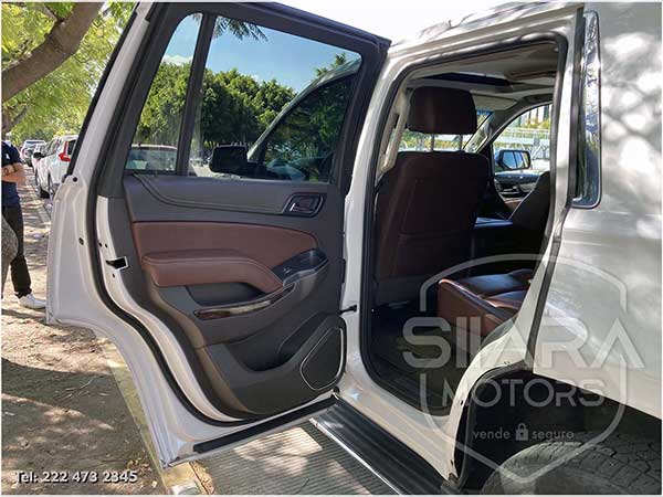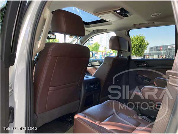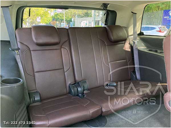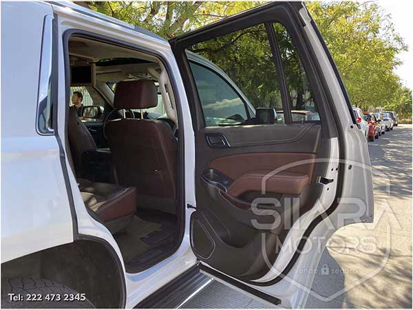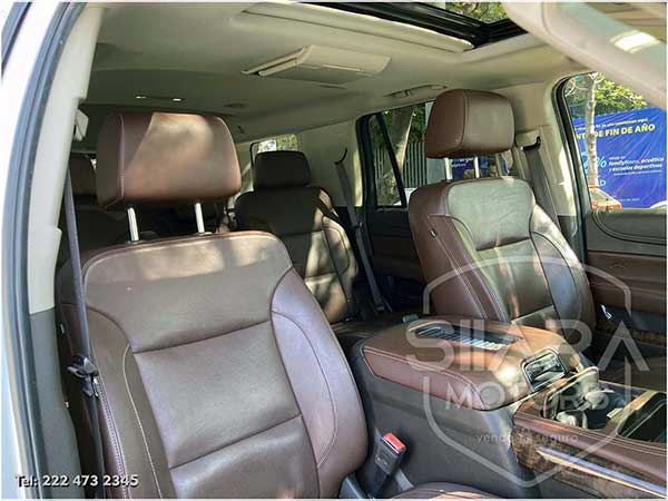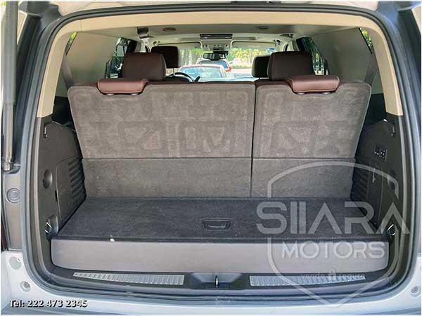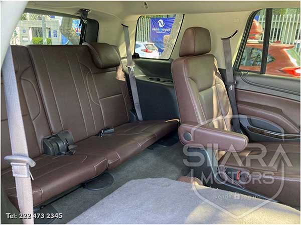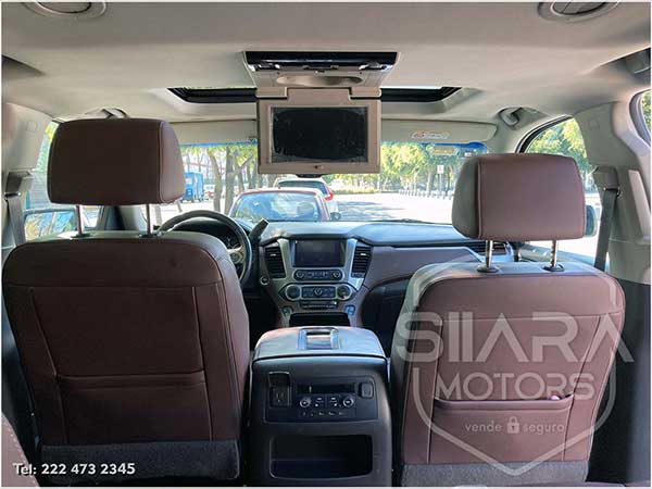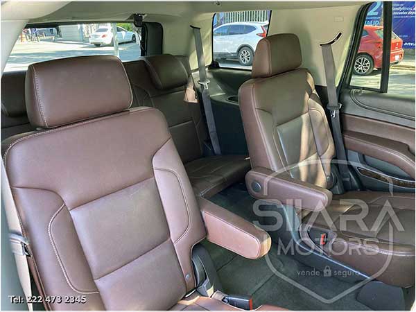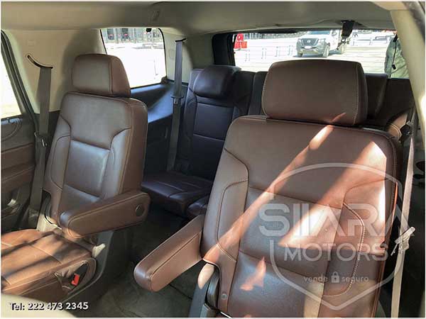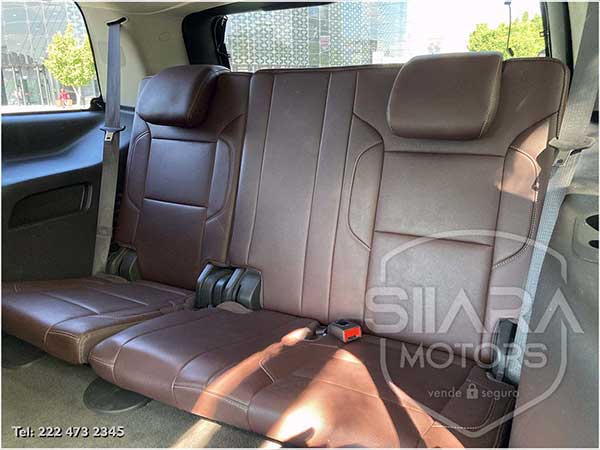 Asientos eléctricos, con ajuste lumbar, y memoria de posiciones. Vestiduras de piel, con calefacción y enfriamiento. Acabados de madera. Quemacocos y PANTALLA DVD CON CONTROL REMOTO Y 2 AUDIFONOS. Volante calefactable multifunciones forrado en piel, con ajuste eléctrico de altura y profundidad, con control de crucero, controles de audio, controles para teléfono, mandos de voz, etc. Climatizador automático de múltiples zonas. Consola central que muestra cámara de reversa y sensores de estacionamiento, sistema de sonido de excelente calidad de agencia, con Bluetooth, CD, entrada auxiliar. Múltiples bocinas en todas las puertas y demás lados. Amplios asientos traseros, con descansabrazos al centro, tercera fila de asientos. Amplia cajuela, y además, las dos filas de asientos traseros son abatibles, por lo que se puede tener una cajuela aún mayor en caso de ser necesario. La puerta de la cajuela es eléctrica.