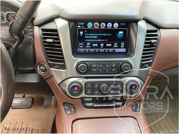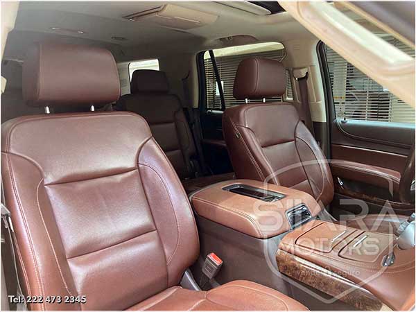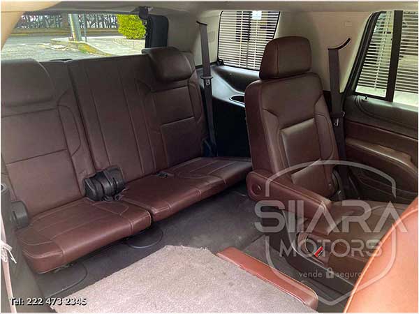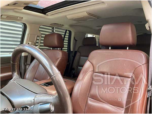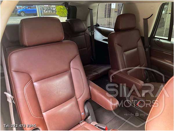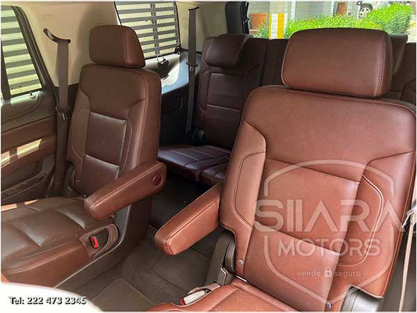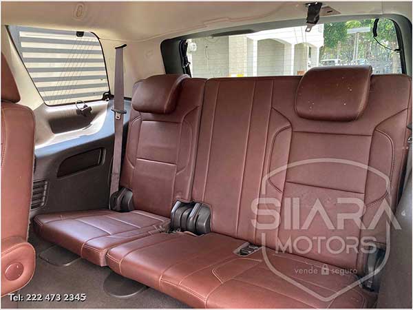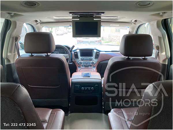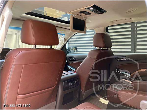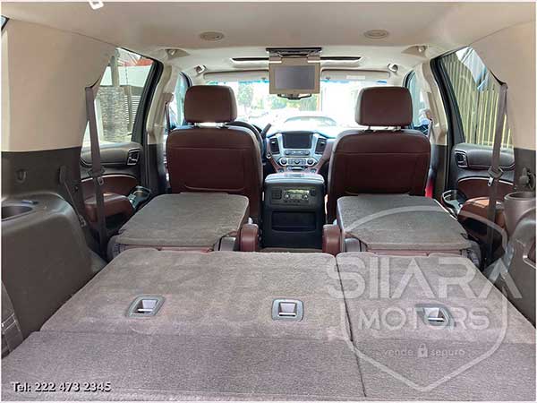 Asientos eléctricos, con ajuste lumbar, y memoria de posiciones. Vestiduras de piel, con calefacción y enfriamiento. Acabados de madera. Quemacocos y PANTALLA DVD CON CONTROL REMOTO Y 2 AUDIFONOS. Volante calefactable multifunciones forrado en piel, con ajuste eléctrico de altura y profundidad, con control de crucero, controles de audio, controles para teléfono, mandos de voz, etc. Climatizador automático de múltiples zonas. Consola central que muestra cámara de reversa y sensores de estacionamiento, sistema de sonido de excelente calidad de agencia, con Bluetooth, CD, entrada auxiliar. Múltiples bocinas en todas las puertas y demás lados. Amplios asientos traseros, con descansabrazos al centro, tercera fila de asientos. Amplia cajuela, y además, las dos filas de asientos traseros son abatibles, por lo que se puede tener una cajuela aún mayor en caso de ser necesario. La puerta de la cajuela es eléctrica.
