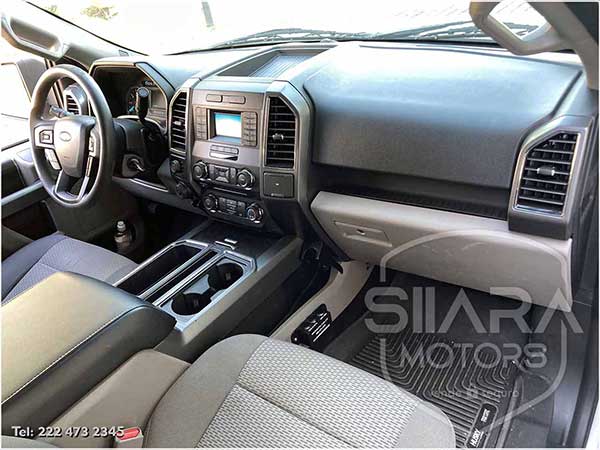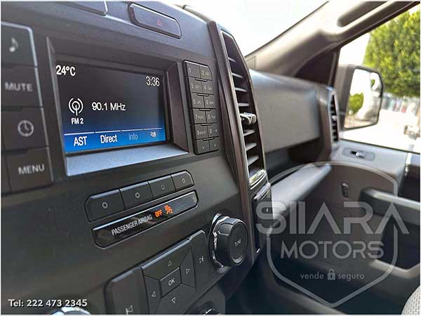 Amplios y cómodos asientos con descansabrazos, Volante multifunciones forrado en piel con ajuste de altura, control de audio, y controles para teléfono. Vidrios, seguros y espejos eléctricos. Aire acondicionado, pantalla que muestra cámara de reversa y detalles multimedia. Sistema SYNC para sonido de excelente calidad de agencia, con bluetooth, entrada auxiliar CD y USB. Cuenta con múltiples bocinas en todas las puertas. Amplios asientos traseros y espaciosa batea.