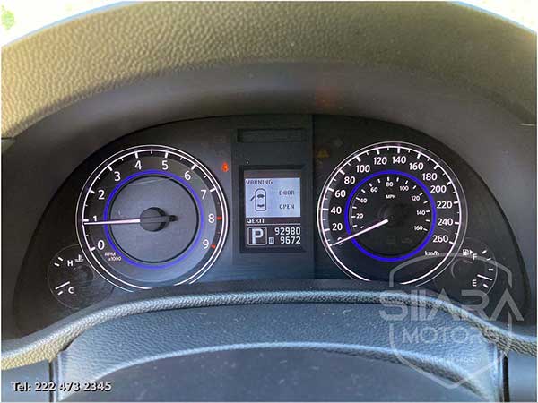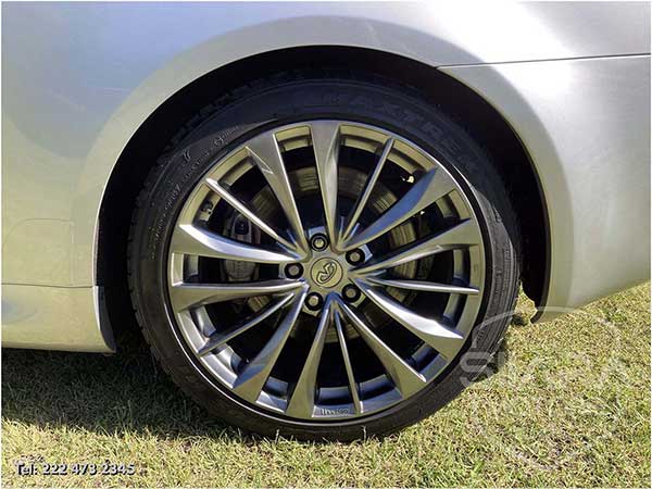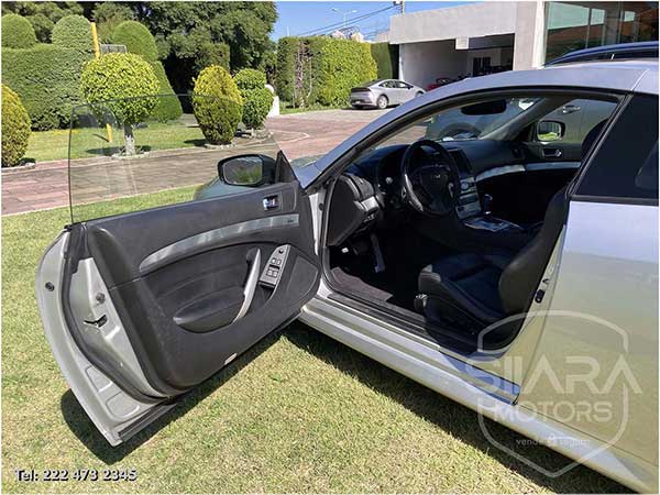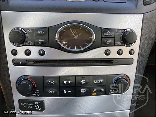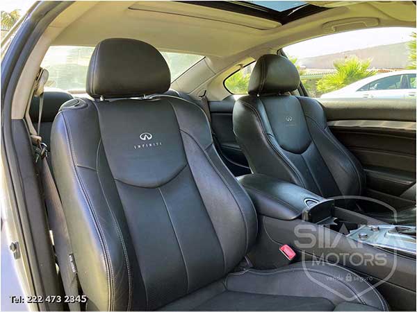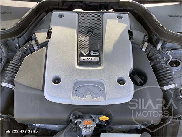 Tiene el máximo equipo de seguridad disponible, incluye: frenos de disco en las cuatro ruedas con ABS, sistema de control de tracción. La Distribución Electrónica de Fuerza de Frenado (EBD) ajusta la cantidad de presión aplicada a las llantas delanteras y traseras para mejorar el rendimiento de frenado. El sistema avanzado de bolsas de aire INFINITI (AABS) ajusta la velocidad a la que las bolsas se inflarán, de acuerdo a la gravedad del impacto y la fuerza aplicada en los cinturones de seguridad. Soporte inteligente para cabeza. Faros de xenón, faros de niebla, luces direccionales en los espejos.