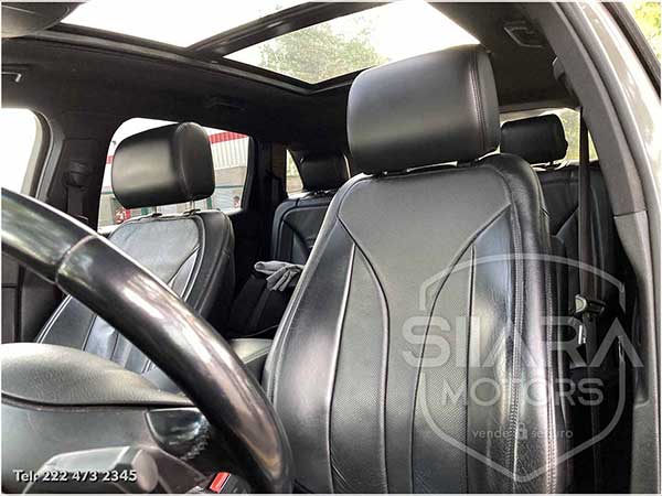 Llaves de presencia con botón de encendido. Vestiduras de piel. Asientos eléctricos, calefactables y con memoria de posiciones. Techo panorámico. Volante multifunciones forrado en piel, con ajuste eléctrico de altura y profundidad, paletas de cambios, control de audio, controles para teléfono, y selectores, etc. Consola central con amplia pantalla, Además muestra GPS, cámara de reversa, sensores de estacionamiento delanteros y traseros, estado del vehículo, detalles multimedia, etc. Sistema de sonido con Bluetooth y entrada auxiliar. Diferentes modos de conducción. Climatizador automático de múltiples zonas, Los asientos traseros son abatibles, por lo que se puede tener una cajuela más amplia en caso de ser necesario.