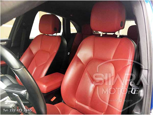 Vestiduras de piel, asientos delanteros deportivos adaptables de 18 vias, eléctricos y calefactables con ajuste lumbar y de altura, con memoria de posiciones. Volante multifunciones con ajuste de altura y profundidad, control de crucero, controles de audio, controles para teléfono, mandos de voz, etc. Climatizador automático, tablero digital con GPS. Pantalla central táctil con Apple Car Play/Android Auto. Además, muestra sensores de estacionamiento, estado del vehículo, detalles multimedia, etc. Sistema de sonido de excelente calidad, de agencia, con Bluetooth, entrada auxiliar, lector de USB y múltiples bocinas. Palanca con diferentes modos de conducción, freno de mano eléctrico, con función autohold.