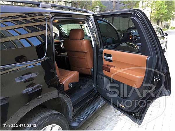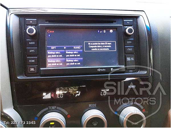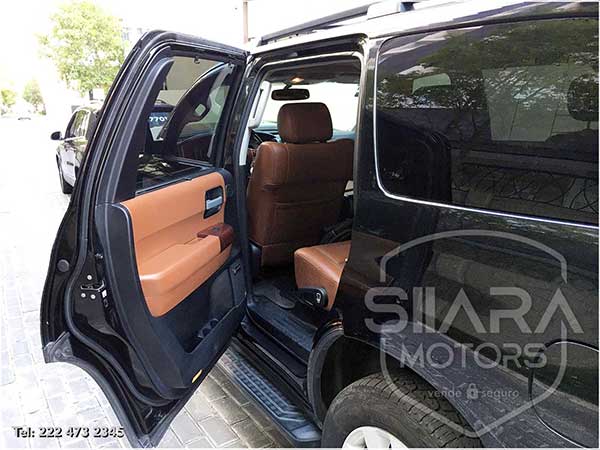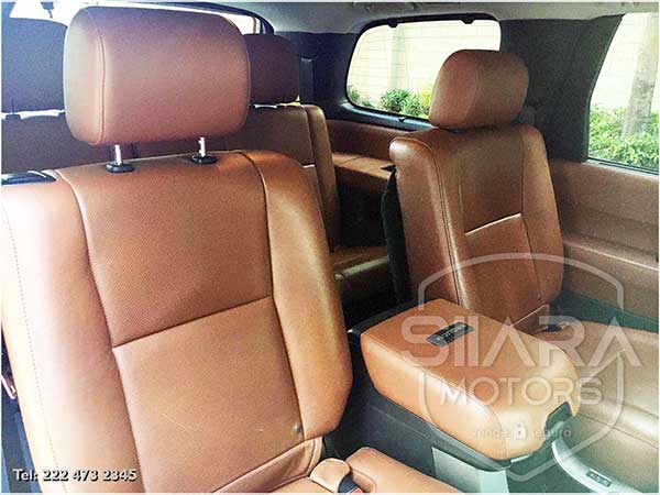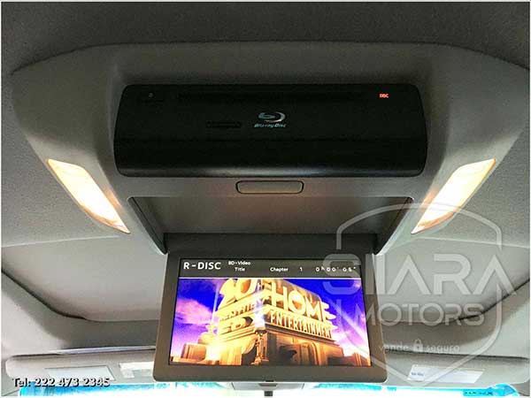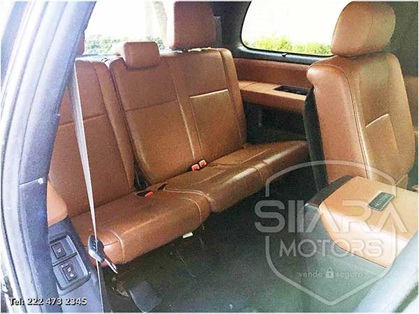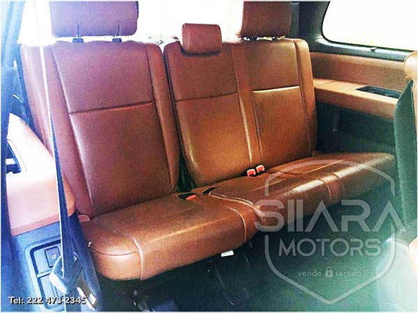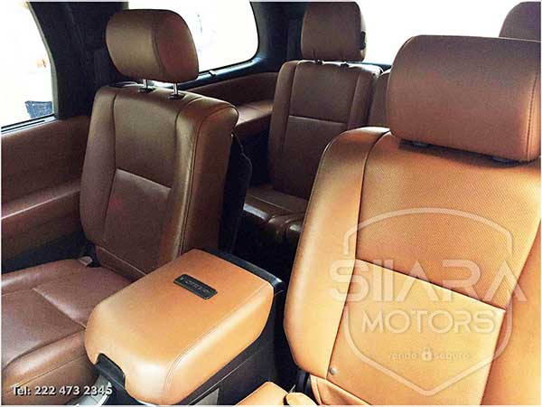 Asientos eléctricos con ajuste lumbar con vestiduras de piel premium. Volante multifunciones forrado en piel, con ajuste eléctrico de altura y profundidad, controles de crucero, controles de audio, controles para teléfono. Quemacocos, climatizador automático de múltiples zonas. Consola central con amplia pantalla táctil, con GPS y cámara de reversa y sensores de estacionamiento. Sistema de sonido JBL de excelente calidad de agencia, con Bluetooth, CD, y múltiples bocinas en todas las puertas y demás lados. Pantalla para películas con reproductor BlueRay. Amplios asientos traseros con espacio para 7 pasajeros. Amplia cajuela, y además, todos los asientos son abatibles, por lo que se puede tener una cajuela muy amplia en caso de ser necesario.